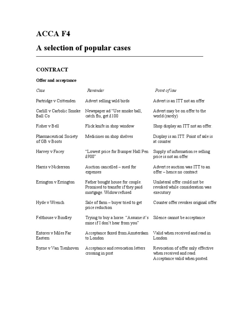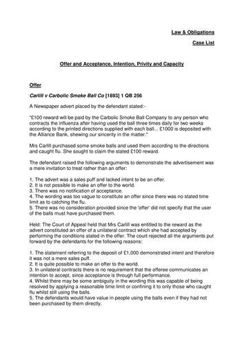In order to understand the law on offer and acceptance, you need to understand the In most cases, an offer will be made to a specified person – as when Ann offers to sell her A contract arising from an offer to the public at large, like that in Carlill, is usually a unilateral contract. ... Access Doc
